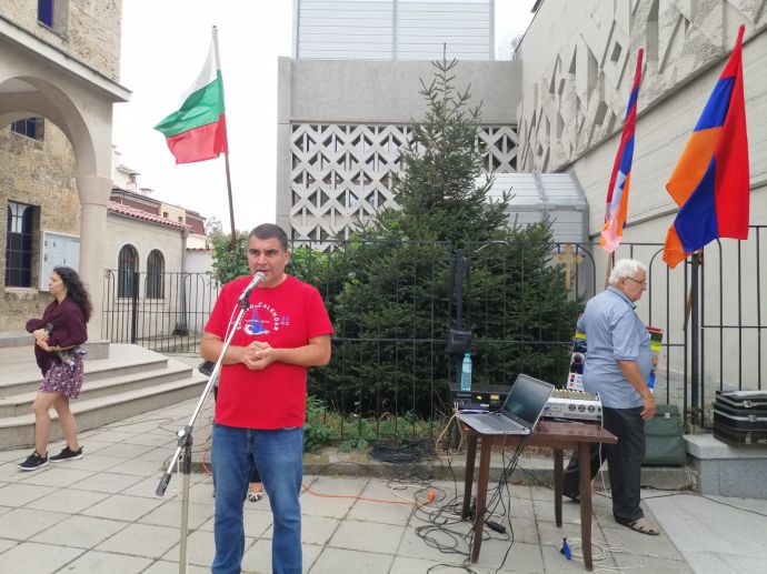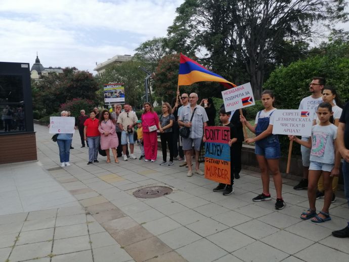 „Събра ни това, че сме свидетели на едно престъпление срещу човечността, което сега се извършва от страна на Азербайджан. Бургаската общественост е съпричастна с арменците, защото това, което се случва там, можем да окачествим като един античовешки акт. Скоро в Нагорни Карабах няма да остане нито един жив арменец”, каза журналистът Кеворк Дадурян, един от организаторите на днешния протест.