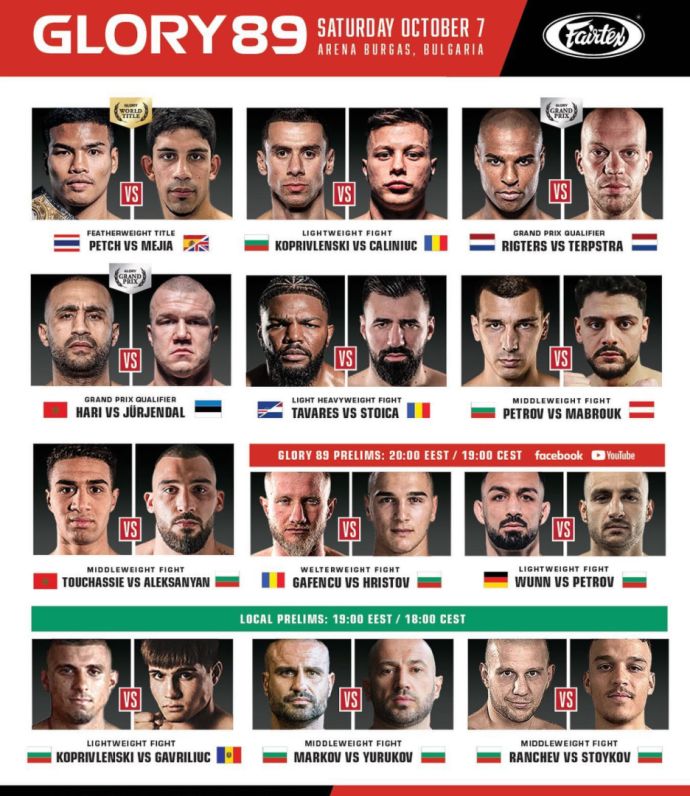 Вместо да бъде последен сблъсък и кулминация на вечерта, двубоят между мароканската звезда Бадр Хари и естонецът Уку Юрендал ще бъде изместен малко по-рано във файт картата. Причина за решението на световната организация GLORY е огромния зрителски интерес от цял свят и фактори като часовата зона, в която е България и най-гледаното време в Европа. Решението на практика измества сблъсъка между Хари и Юрендал от серията Heavyweight Grand Prix, веднага след този между Луис Таварес и Богдан Стойка. След Бадр Хари на ринга се качва следващата двойка от серията Heavyweight Grand Prix Ригхтерс – Терпстра, като победителят от нея се класира за финала през декември. Мачът между Стоян Копривленски и Сорин Калинюк е предпоследен преди двубоя за шампионския пояс между Петч и Давид Мехия