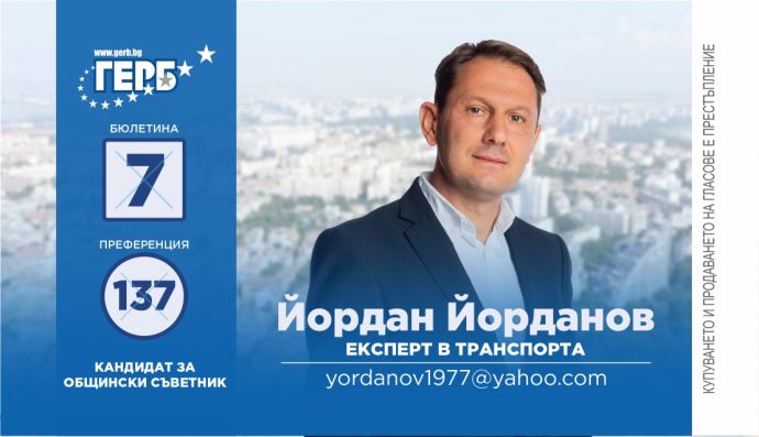 Можете да подкрепите Йордан Йорданов, като гласувате за ГЕРБ с №7 в интегралната бюлетина и отбележите преференция 137.