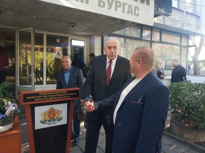 Бургаската дирекция на МВР събра бивши директори на официалната церемония по отбелязване професионалния празник на униформените полицаи - 8-ми ноември, която се състоя днес. В церемонията се включиха Аргир Бояджиев, Георги Пенев, Красимир Петров, Васил Едрев, Милен Димитров и Калоян Калоянов. „Благодарим на всички тях за огромния принос за издигане честта на полицейската професия, за упоритостта и професионализма през активните им години. Благодарим за всичко, което са дали на крайморската ни дирекция и нейния състав, за грижата, за сигурността, за реда, спокойствието и спазването на законовите принципи в държавата. Задочно отправяме благодарност и към директорите Тодор Чинев, Павлин Димитров и Радослав Сотиров, които въпреки физическото си отсъствие днес поради лични причини, засвидетелстваха интереса и ангажираността си с бургаската полицейска дирекция, както и радостта от поканата да бъдат част от днешното събитие.“, отбелязаха от ОДМВР-Бургас.
