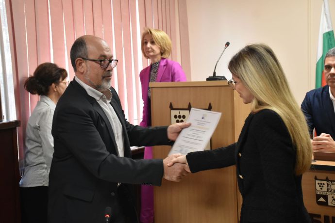 Церемонията продължи с първото заседание на местния парламент, чийто председател по традиция бе най-възрастният общински съветник – Никодим Стоянов. При спазване на необходимите процедури за председател на Общински съвет – мандат 2023-2027 бе избран Адам Адамов, който призова всички да загърбят политическите си пристрастия и да работят заедно за продължаващото развитие на общината.