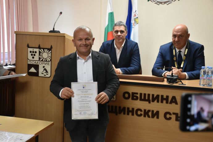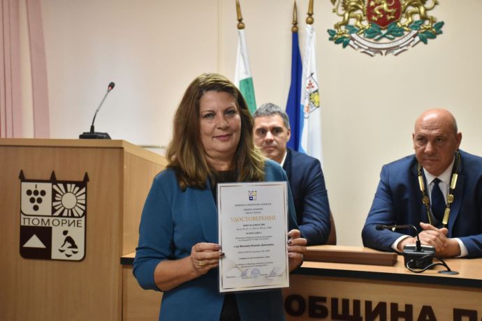 „Пожелавам ви през новия мандат да работите така, че всички граждани да са горди с работата на своя кмет и на Общински съвет – Поморие. Работете за благополучието на общината.“ – така Областният управител поздрави присъстващите, а председателят на Общинската избирателна комисия Кольо Николов връчи удостоверенията на всички, спечелили доверието на избирателите.