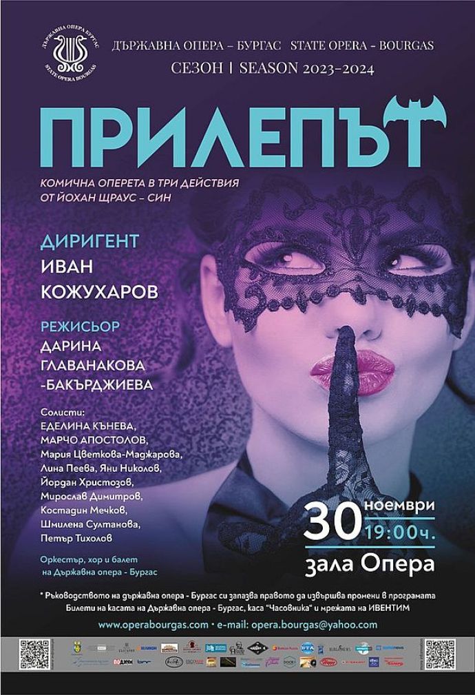 Празнична ще бъде атмосферата в залата на Бургаската опера – в четвъртък. Искрящото настроение – като пенливо шампанско от бала на Княз Орловски, е гарантирано на 30 ноември от 19 часа – със спектакъла на една от най-обичаните оперети на Йохан Щраус-син – "Прилепът".