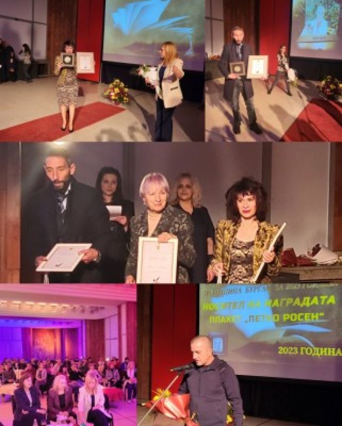 Най-успешните бургаски автори и произведения на 2023 г. бяха отличени тържествено на церемония в Операта. Раздадени бяха три отличия – Пегас, както и награди за художествена проза и поезия – плакети на името на Петко Росен и Христо Фотев.