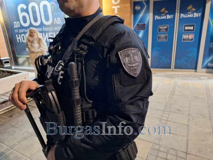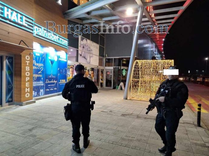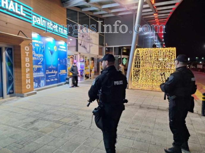 Полицаи, снабдени с дългоцевно оръжие, приковават погледите на клиенти пред двата бургаски мола, търговските обекти на големите вериги, коледните базари, жп и автогарите в Бургас.
