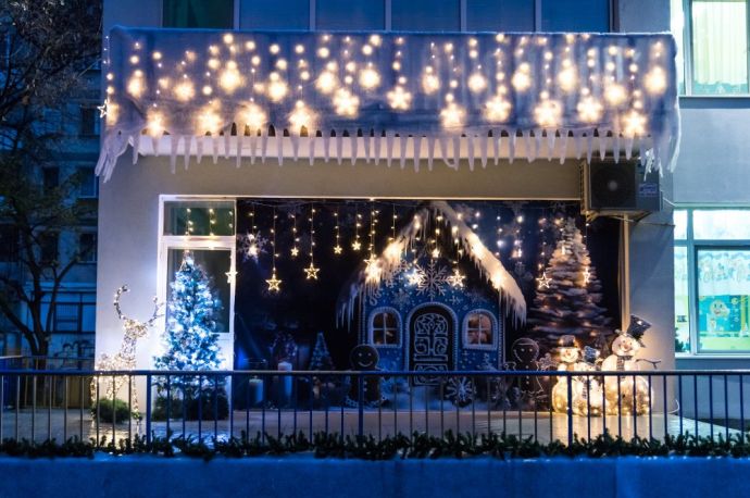 На ул. „Иван Богоров“ ви очаква истински леден уют от изкуствен сняг, стъклени дървета и коледни декорации.