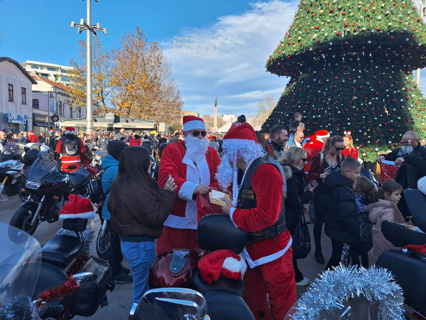 Преди да се съберат в центъра мотористите провеждат атрактивно шествие, посещавайки адреси на деца, на които раздават подаръци.