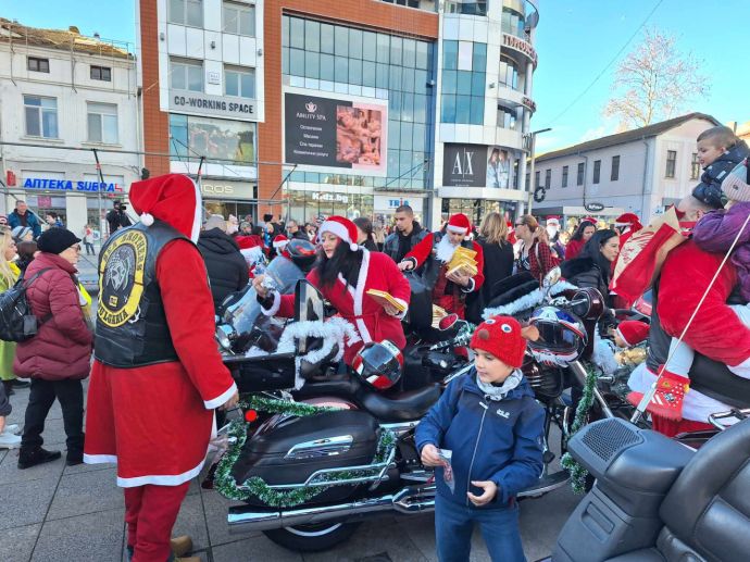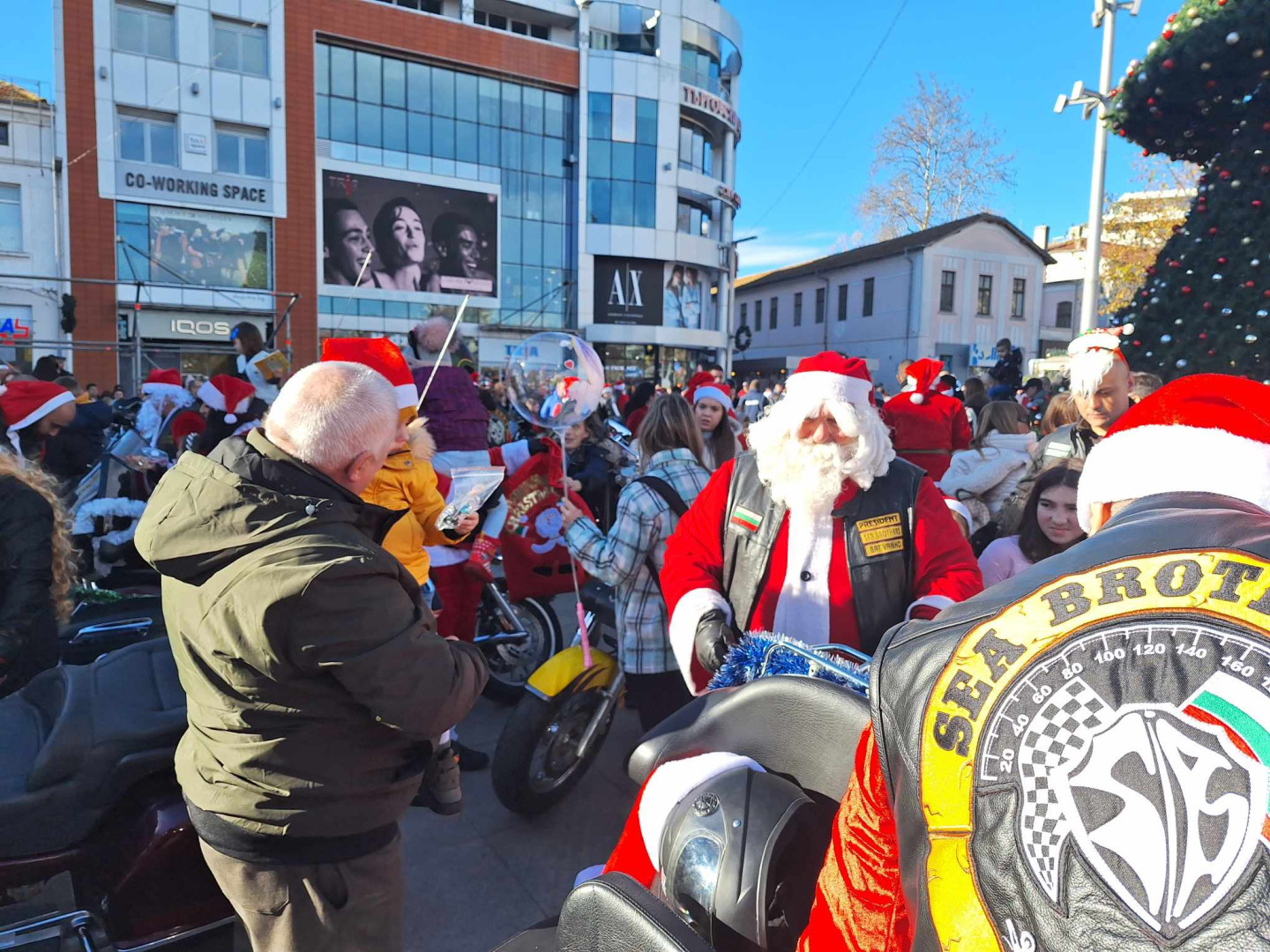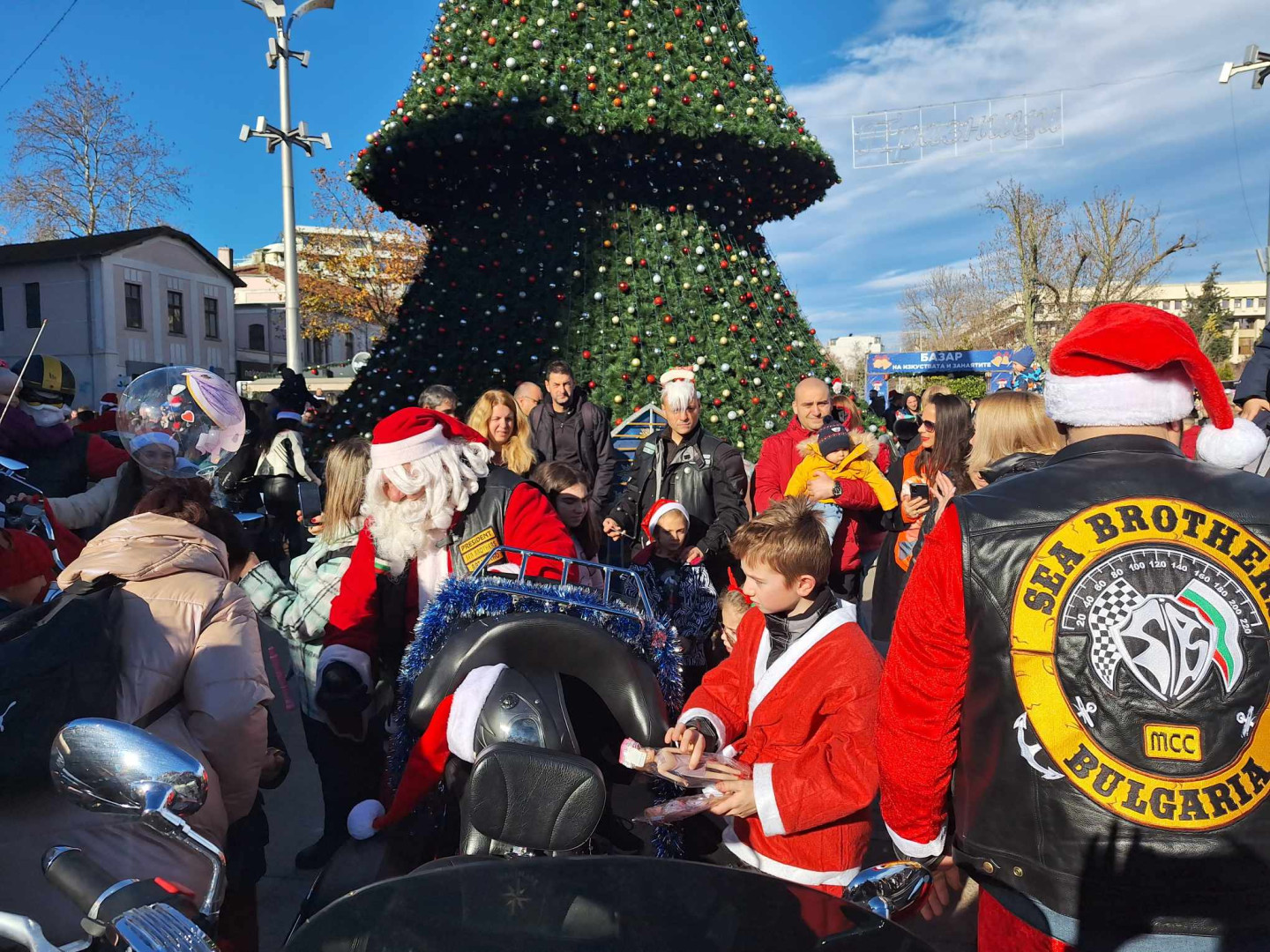 Десетки мотористи, облечени като джуджета, водени от Дядо Коледа в Бургас се събраха край елхата на площад "Тройката". Там радваха не само децата, но и техните родители, баби и дядовци. Най-малките получиха и подаръчета, а всички си направиха атрактивни селфита.