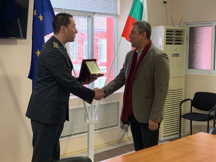 Почетният плакет на г-н Георги Лапчев бе връчен от директора на РДПБЗН-Бургас - комисар Николай Николаев.