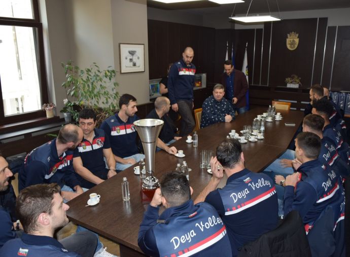 Кметът Димитър Николов внася за гласуване в местния парламент искане за одобряване на разход от 20 000 лева като премия за „Дея“. Преди броени дни волейболният клуб спечели Купата на България при мъжете. Това е неговият пръв голям трофей.