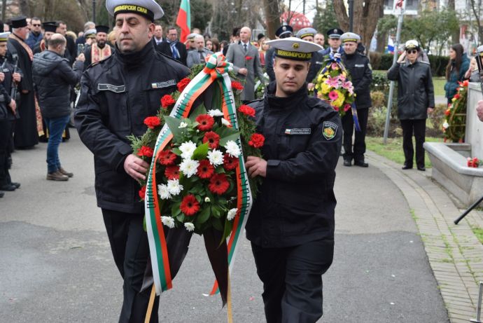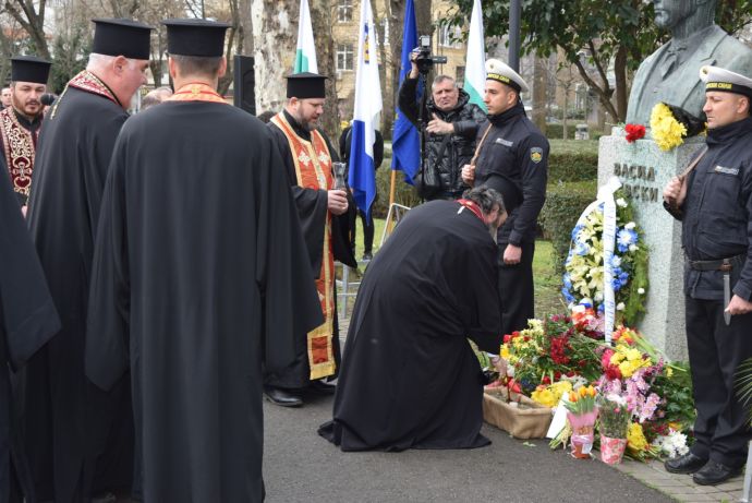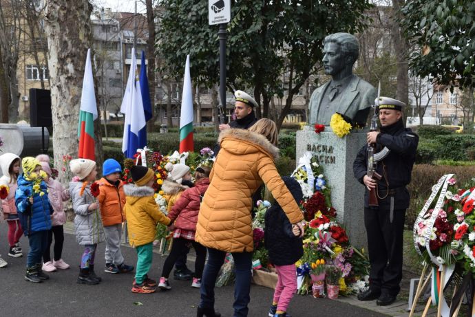 Със заупокойна молитва, военен ритуал и поднасяне на венци и цветя Бургас отдаде почит към делото на Васил Левски. Организираната от Община Бургас церемония се проведе пред паметника на Апостола в Морската градина.