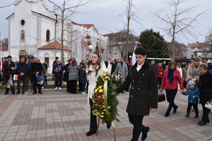 146 години от Освобождението на България от османско иго бяха отбелязани в Поморие с общоградско тържество, като началото бе дадено с издигане на националния флаг от почетния караул към военно формирование 48940 – гр. Бургас. В признателност към героите, загинали без страх в името на Родината, отец Борис Георгиев от храм „Свето Рождество Богородично“ отслужи благодарствен молебен, с певческото участие на дамски хор “Благовестие” с диригент Йорданка Туджарова. Програмата продължи с изяви на даровити поморийски деца, пазители и изследователи на българския фолклор, култура и история. Поздрав към всички поднесоха: Танцов състав от Основно училище „Христо Ботев“ с ръководител госпожа Велиана Дачева, Детски фолклорен танцов състав „Раковина“ към ЦПЛР – ОДК Поморие с ръководител Владимир Данаилов, децата от от група “Теменужка” при Детска градина „Детелина“ с учители Славка Мешкова и Тотка Колева, малчуганите от Детска градина „Веселушко” – група „Мечо Пух“ и група „Звездички“ с ръководител Рада Петрова, ученици от СУ „Иван Вазов“ Анжела Кръстанова и Стела Пеева и сборна формация от ОУ „Христо Ботев“ с учители Йорданка Георгиева и Лина Коева.