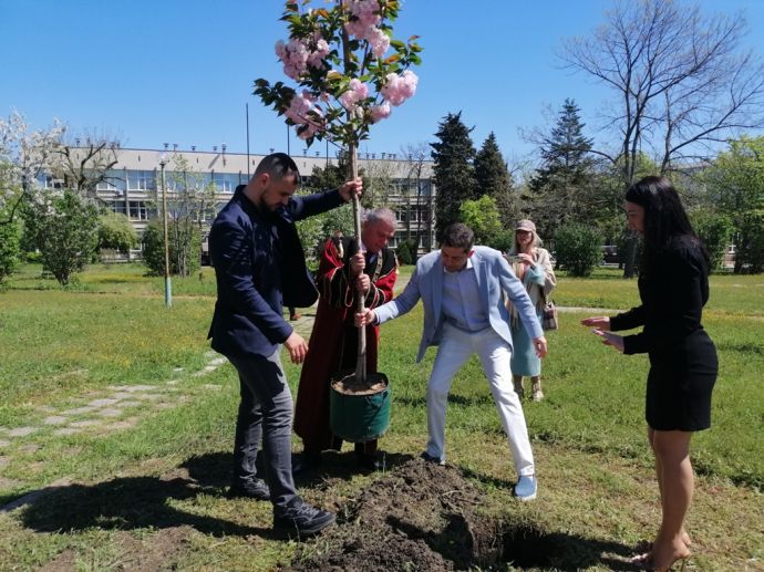 За завършек официалните лица засадиха японска вишна, която ще цъфти пред Academic café.![]()
