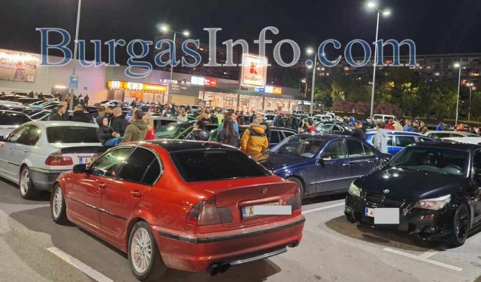 Купон на младежи, любители на автомобилите и адреналина, изпълниха тази вечер паркинга на хипермаркет "Кауфланд" в бургаския ж.к. "Славейков". Тътена от колите вдигна на крак жителите от околоните блокове. Оказа се, че младежите всяка седмица се събират там, за да се забавляват.