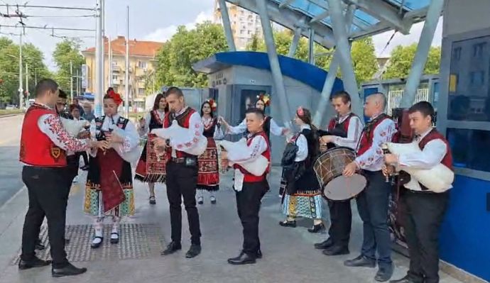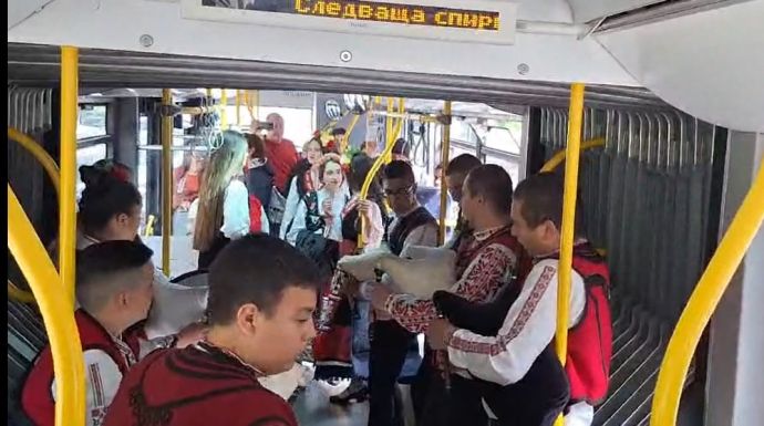 Пътниците в градския транспорт на Бургас бяха заредени вчера с добра енергия, музика, песни и празнично настроение по случай Летния Никулден. Ръководител на групата от СУ “Добри Чинтулов” е Георги Миронски.