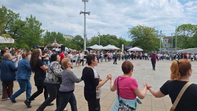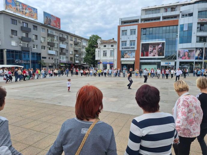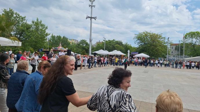 Български хора се извиха на площад „Тройката“ в центъра на Бургас днес, като на тях се хванаха млади и възрастни. Инициативата за събитието е на Жечо Станков, който за поредна година организира открит урок по народни танци. Този уроксе превръща в истински празник на българския фолклор, настроението е приповдигнато и хората се включват с много ентусиазъм. Сред тях имаше както представители на клубове в града, така и случайни минувачи.