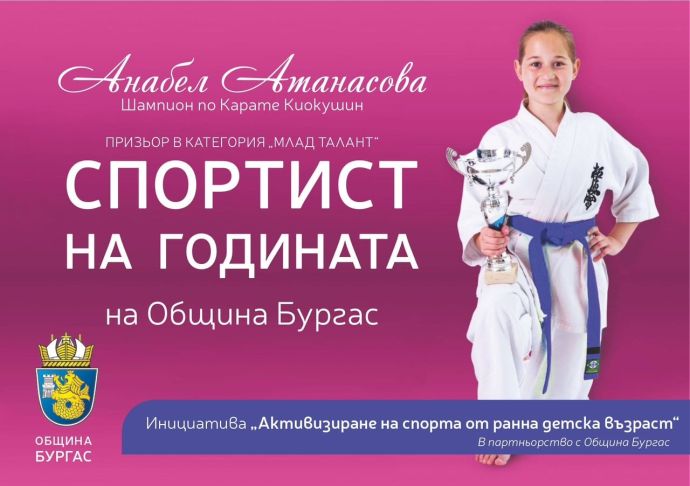 Кампания “Активизиране на спорта от ранна детска възраст” стратира днес в детските градини в Бургас. Водещ бе призьорът в престижната класация „Спортист на годината“ Анабел Атанасова в партньорство с Община Бургас и СКК “Киокушин Спирит Бургас”, където тренира Анабел.