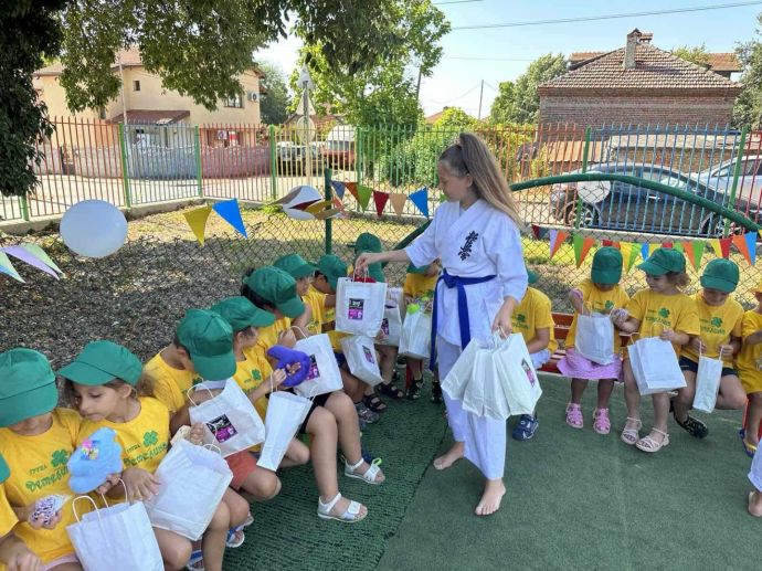 Инициативата се състои в провеждане на демонстрации по Карате киокушин в детските градини в Община Бургас, като малките участници в кампанията получиха подаръци и картички с автограф.