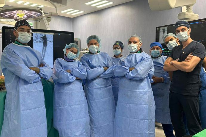 На 17-ти юни 2024 г. в клиниката по съдова хирургия на ,Сърце и Мозък’ Бургас постъпва мъж на 56 годишна възраст, в увредено и нестабилно общо състояние, с внезапно появили се през последния час силни болки в областта на корема и кръста и усилени пулсации около пъпа. Пациентът И.И. е бил с известна, установена в миналото абдоминална аортна аневризма, както и с редица придружаващи заболявания като захарен диабет, артериална хипертония, мозъчно-съдова болест, както и злокачествено новообразувание на пикочния мехур. Всички тези фактори превръщат медицинския случай в предизвикателство с повишена трудност за съдовите хирурзи и поставят живота на пациента в риск.