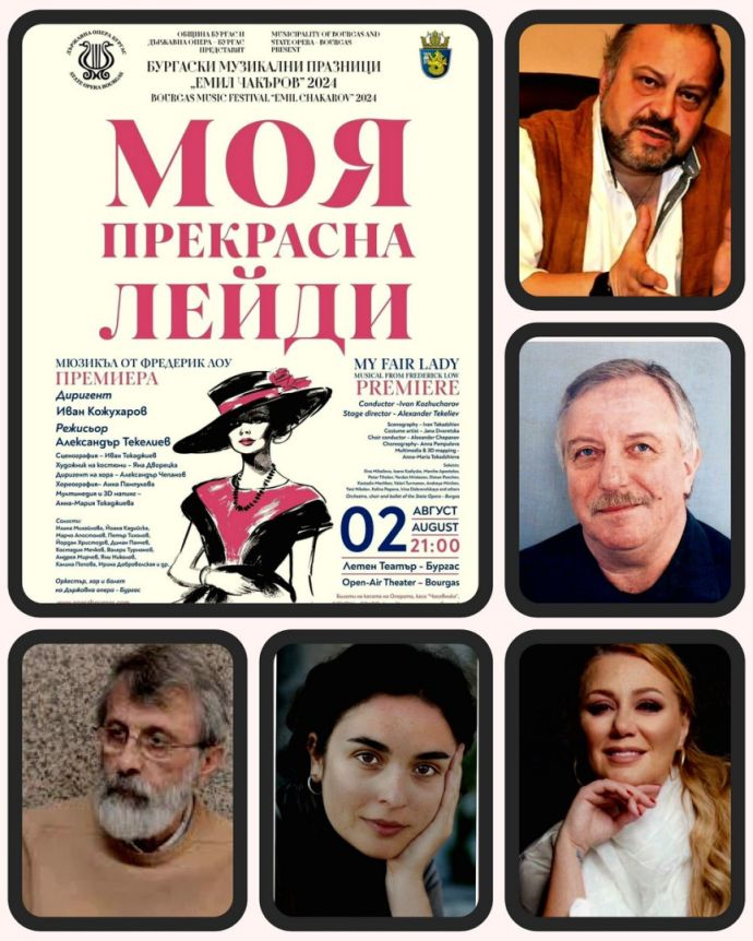 Интензивният летен творчески ритъм на Държавна опера – Бургас върви към своя апогей – дългоочакваната премиера на един от най-известните и изпълнявани мюзикъла „Моя прекрасна лейди“ от Фредерик Лоу. Събитието е в рамките на Бургаските музикални празници „Емил Чакъров“ 2024, осъществявани успешно за поредна, седемнадесета, година от Бургаската опера в партньорство с Община Бургас. Дългоочакваният премиерен спектакъл на бродуейския мюзикъл е на 2-ри август от 21:00 часа на сцената на Летния театър в Бургас.