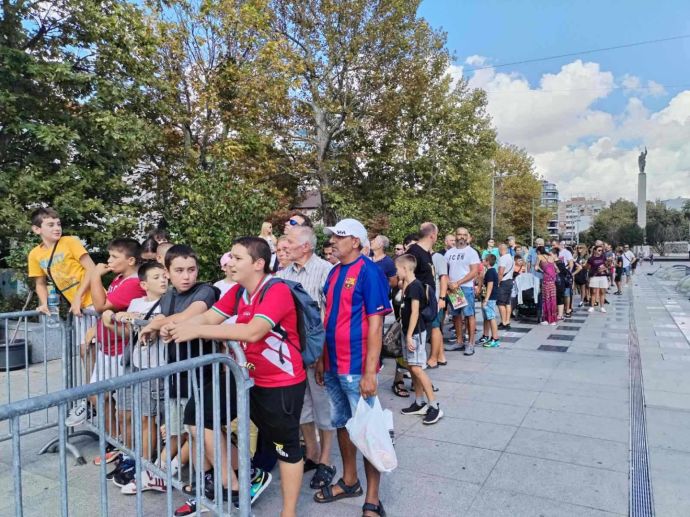 Легендата на българския спорт Христо Стоичков радва феновете си в Бургас на площад "Тройката" пред TriA City Centre. Изви се опашка от малки и големи фенове на футбола.