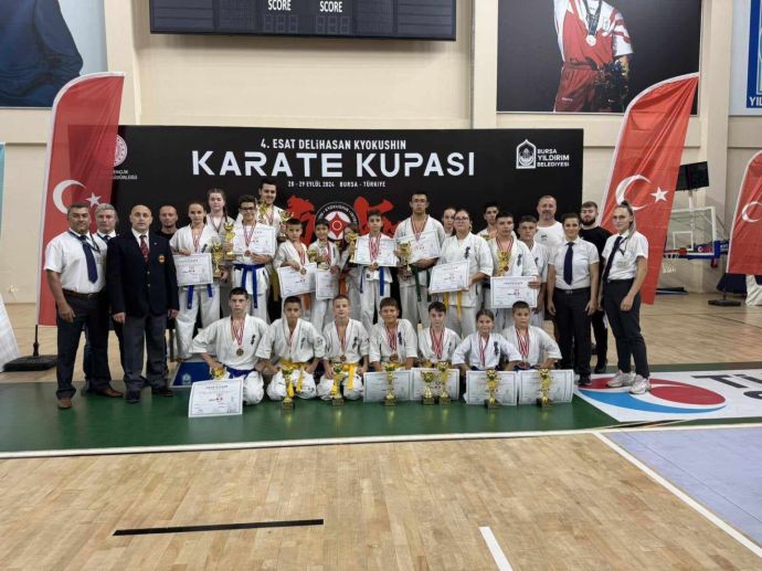 Изключителен успех на Българският отбор, който спечели 17 златни, 9 сребърни и 7 бронзови медали на “The 4th Esat Delihasan International Kyokushin Cup” в Бурса, Турция.
