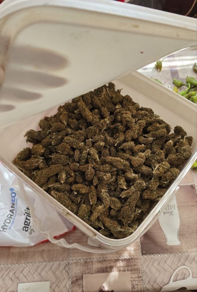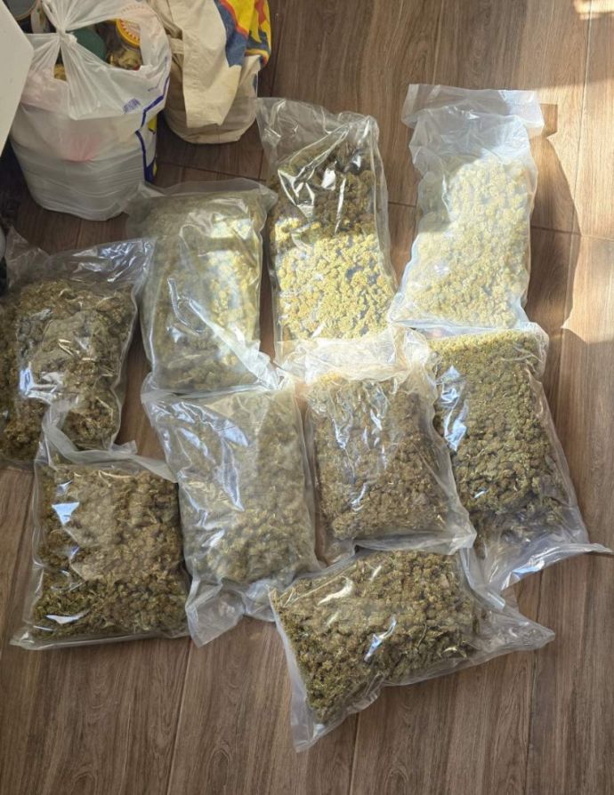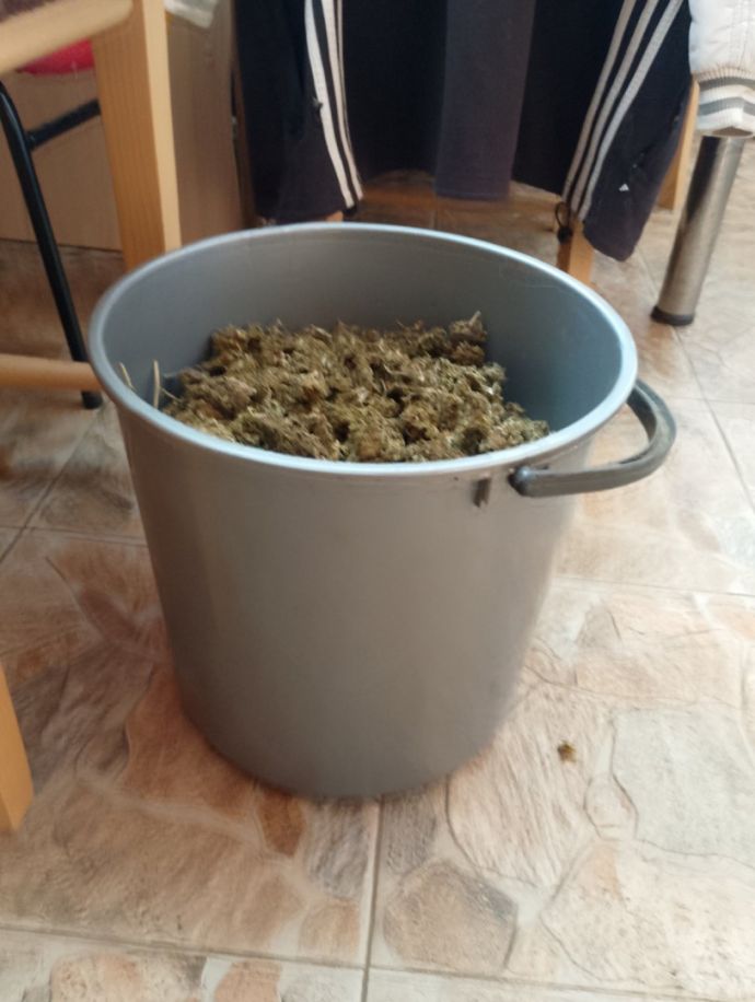Служители от отдел «Криминална полиция» към ОДМВР – Бургас съвместно със служители от Пето Районно управление - Бургас извършили претърсване в частна къща в с. Дюлево, община Средец, обитавана от 53-годишен криминално проявен мъж от същото село, като намерили и иззели девет плика с тегло от по 0. 500 кг., съдържащи глави от съцветия суха зелена листна маса - марихуана. В антрето на жилището са открити две пластвасови кофи със съцветия суха зелена листна маса - марихуана, както и две ел. везни. Общото количество на намереното и иззетото наркотично вещество е около седем килограма. В обитаваната от мъжа стая са намерени и иззети две въздушни пушки, едната от които преправена да стреля с бойни патрони, както и кутия с девет бойни патрона, 22-ри калибър. 53-годишният мъж е задържан за срок до 24 часа. По случая е образувано досъдебно производство.