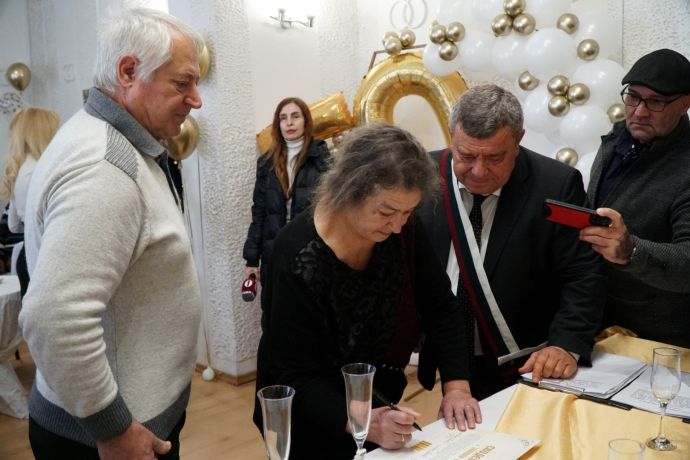 Под звуците на сватбения марш на Менделсон двойките преподписаха своите брачни свидетелства и си обещаха още дълги години съвместен живот. А след церемонията, заедно с кмета Жельо Вардунски, който ръководи церемонията, вдигнаха наздравици за здраве, щастие и любов.