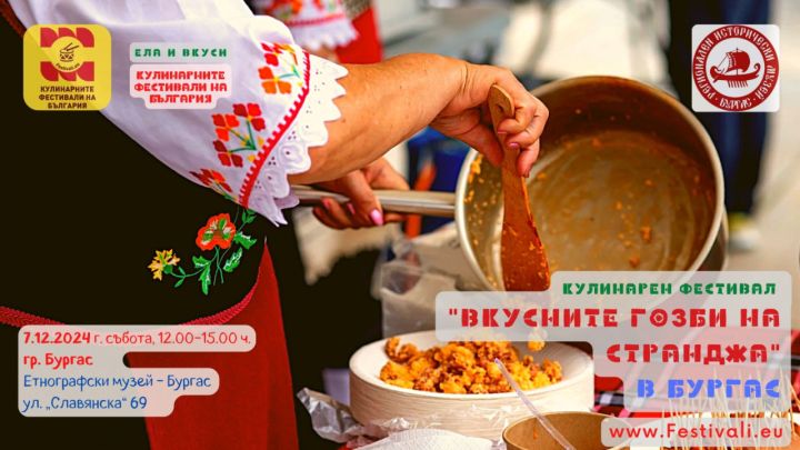 Кулинарният фестивал„Вкусните гозби на Странджа” ще се проведе в Бургас на 7 декември, събота. Началото е 12:00 часа, а мястото- Етнографският музей.