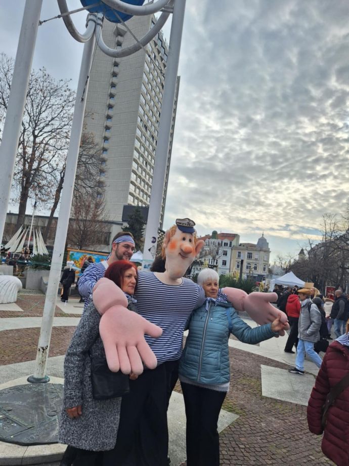 Двуметровият моряк Пейо предизвика усмивки в малки и големи като създаде много настроение на Никулден под Часовника в центъра на Бургас. Деца, родители и възрастни хора се надпреварваха да се снимат с куклата, раздаваща щедро прегръдки и настроение. Празникът на Бургас тече с пълна сила и хиляди хора празнуват заедно на открито, какакто в центъра, така и в жилищните комплекси.