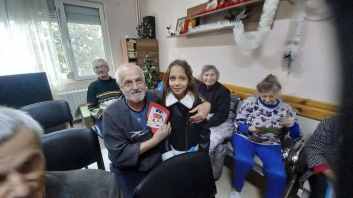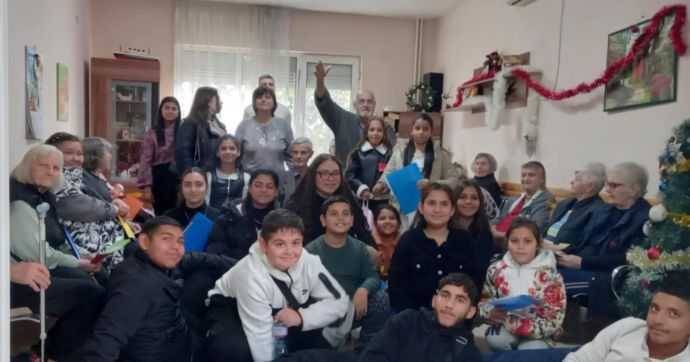 За пореден път учениците от четвърти и осми клас от СУ „Св. Климент Охридски" кв. Рудник отправиха поздрав и изпълниха своя предпразнична програма, като днес те посетиха Дома за стари хора „Цвета и Анка Върбанови" в град Бургас.
