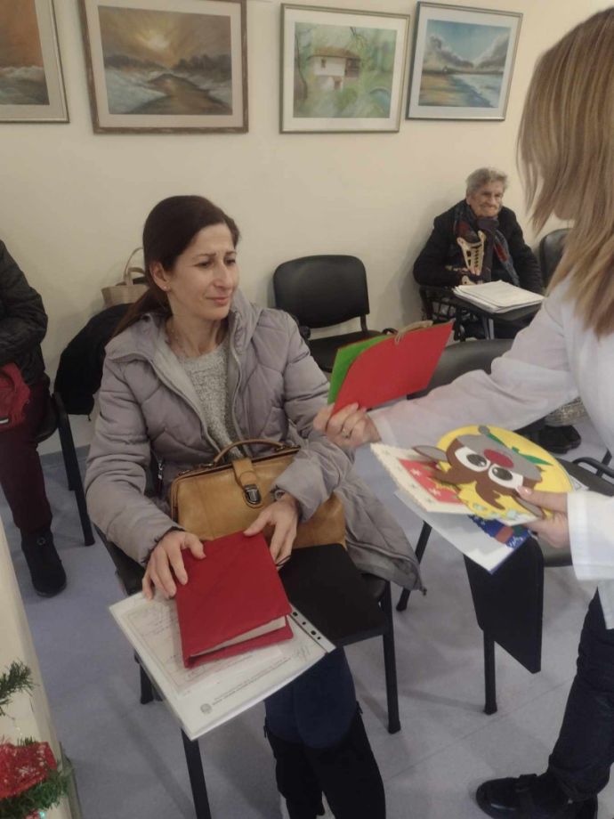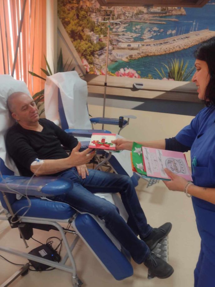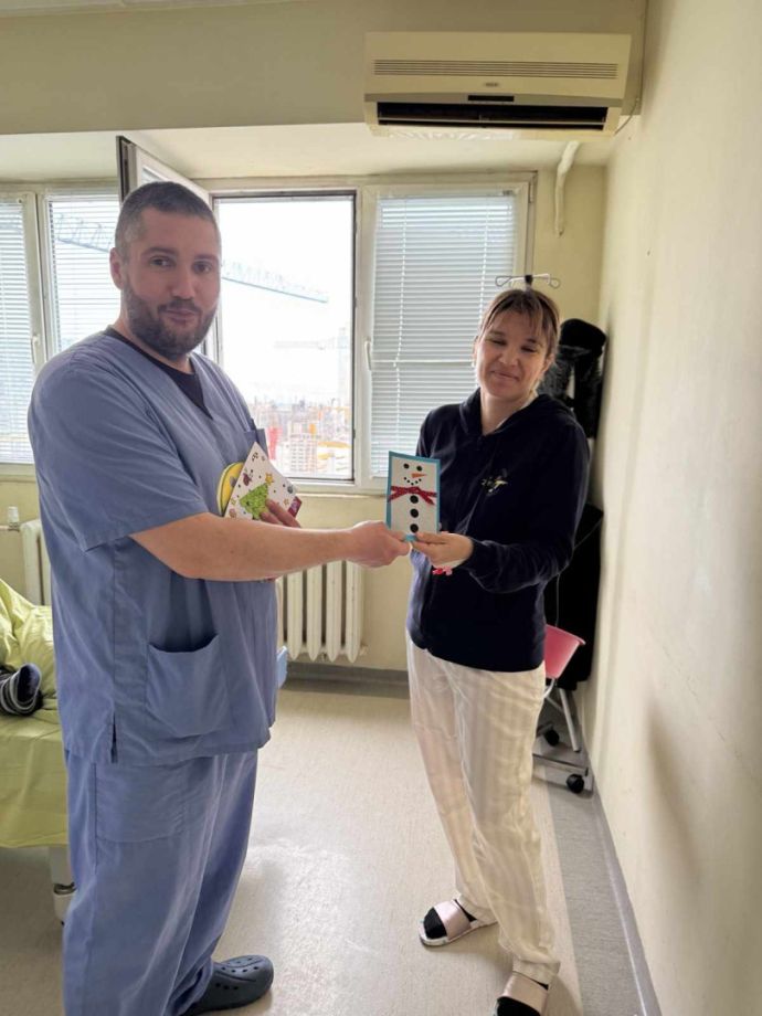 Пъстроцветен букет - селекция от вълшебни рисунки и картички с пожелания, сътворени и дарени от столични детски градини в рамките на „Маратон на Добратата“, част от гражданската инициатива „Усмихни се, чети и оцветявай с Мечо“ вече радва пациентите на КОЦ-Бургас по случай Рождество Христово.