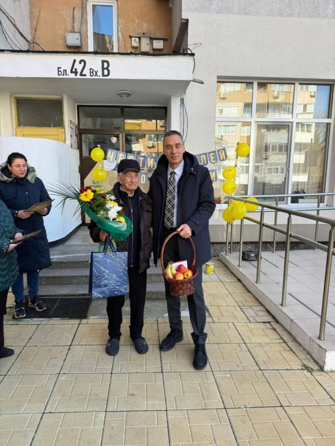 Бургазлията Георги Михалев днес навършва 100 години. Задружните съседи от блок 42, вх. В на к- с “Братя Миладинови”, организираха за столетника чудесна изненада. Сред гостите беше и кметът Димитър Николов, който поздрави рожденика.