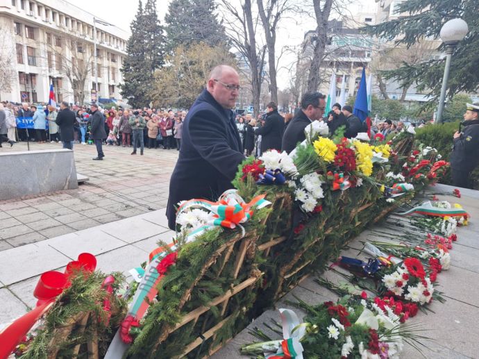 Политици от различни политически сили и много бургазлии се включиха в тържественото отбелязване на националния празник Трети март в Бургас днес. Венци и цветя пред Паметника на загиналите в Руско-турската освободителна война положиха кметът Димитър Николов, вицепремиерътАтанас Зафиров, министърът на енергетиката Жечо Станков, бургаски депутати, областният управител Мария Нейкова, председателят на Общинския съвет Михаил Хаджиянев, омбудсманът Тодор Стамболиев, заместник кметовете Станимир Апостолов, Манол Тодоров, Михаил Ненов, Диана Саватева, общински съветници, представители на обществени организации, много граждани граждани.