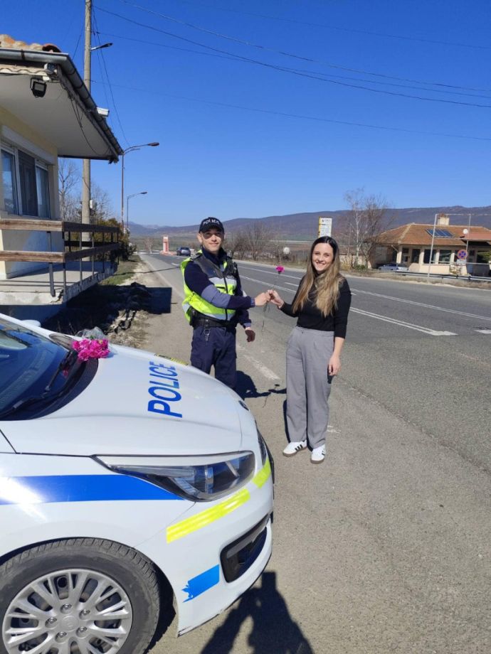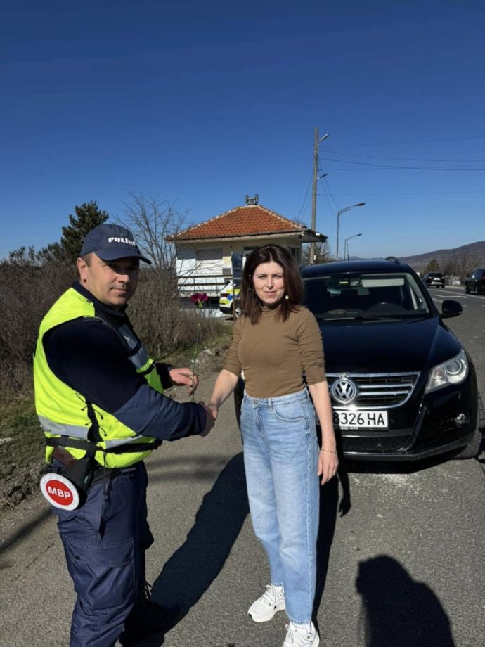 Дамите - водачки на автомобили, получават цвете-изненада от полицейски служители от ОДМВР – Бургас в няколко зони в Бургаски регион днес - на 8-ми март. По инициатива на служителите от Четвърто Районно управление - Бургас младши инспектор Росен Куртев и младши експерт Станислав Манджуков дамите, преминаващи през к-с "Меден Рудник", са приятно сюрпризирани с празнично цвете. Младши полицейски инспектор Ферхан Азис, командир на отделение Фатме Рамадан, мл. автоконтрольор Халит Ниязи и Хасан Шакир от "Патрулно-постова дейност" са великолепната четворка от Районно управление - Руен, която днес отдава своето уважение на по-нежната половина от населението. Районно управление - Несебър заедно с групата „Шофьори Несебър" също се включват в красивата инициатива! "Честит празник, момичета!! Бъдете здрави, красиви и все така вдъхновяващи!! С вас живота е по-прекрасен!", заявиха от ОДМВР – Бургас.