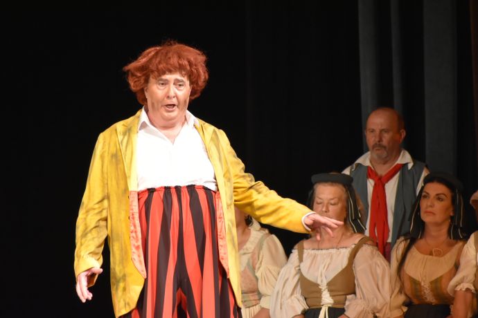 Респектиращ и предаващ драматизма на образа си ще бъде изтъкнатият български баритон Александър Крунев – като Тонио, който ще разчувства присъстващите в залата със знаковия Пролог пред завеса – преди реалното действие, в които се разкриват нагласите на персонажите и плетеницата от човешки страсти/ и е тъжен разказ за съдбата на клоуните, също изпитващи тъга, както и в образа на нелепия ухажор на Коломбина Тадео. В Пролога, който има популярността и на самостоятелно изпълнявано произведение, се разказва тъжната история на съдбовни взаимозависимости и неумолимостта на Времето, поставяйки всеки от героите на символичната шахматна дъска на живота, и в драматичните сценични моменти на сцената.