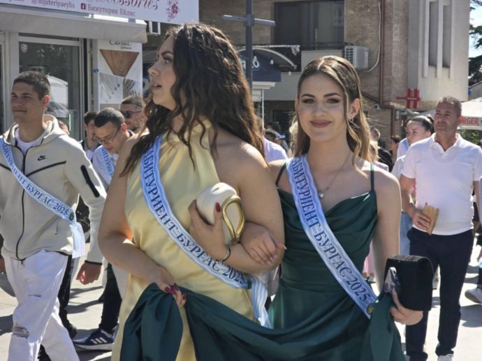 Най-бляскавеьт пяряд зяпочна в Бургас преди минути. По главната улица „Александровска“ шестват младостта и усмивките на абитуриентите, които завъривят срдното си образование през 2025 г. Тази година Бургас изпраща рекордния брой от над 2400 абитуриенти.