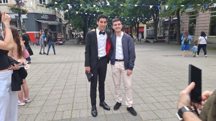 Артистични, красиви, усмихнати младежи – това бяха днес абитуриентите от НУМСИ „ Проф. Панчо Владигеров“, известно като Музикалното, които се събраха на главната улица „Александровска“ в Бургас. Нежни цветове, много дантела, впечатляващ грим бяха част от визията на младите дами. Техние съученици впечатляваха със стилни костюми.