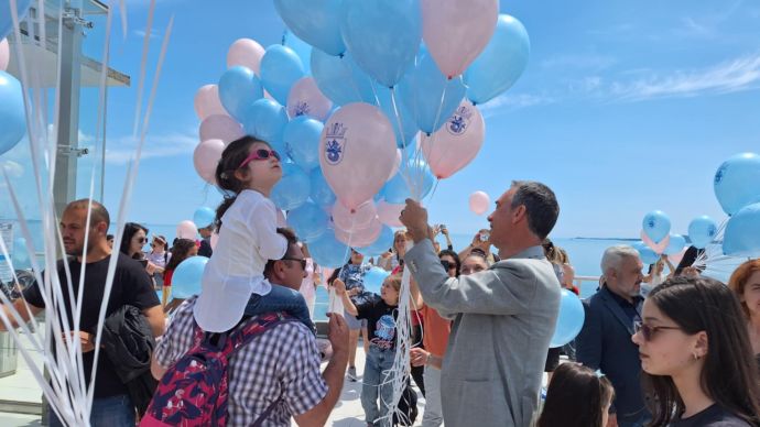 1383 балона - 709 сини и 674 розови, полетяха над Морското казино в Бургас днес по повод Деня на детето. Малки и пораснали малчугани проследиха с много емоции полета им. Броят на балоните бе толкова, колкото деца са родени в морския град през изминалата година.