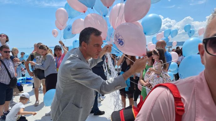 „Най-прекрасните деца са в Бургас – нашето бъдеще, нашата гордост нашата опора. Те са най-трудолюбивите, най-ученолюбивите, най-добрите спортисти.“, каза кметът Димитър Николов, който отброи до момента, в който децата пуснаха цветните балончета.