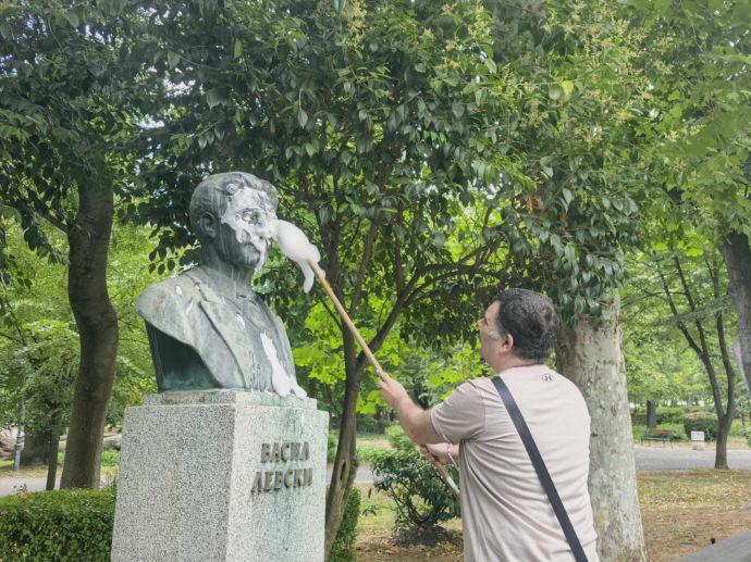 Инициативата е на братята Кеворк и Степан Дадурян, заедно със спонсора Консорциум Почистване Бургас. Измиването бе извършено с микс от препарат и последващо измиване с подходяща температура вода на бюст-паметника и прилежащата територия. Това става с разрешението на местната власт и лично на кмета Димитър Николов. Посланието е да се помни делото на Апостола, който е имал верни сподвижници от Бургаски регион, в т.ч. българи от арменски произход. „Както и че ключова роля за изграждането на историческото ядро на Морската градина на Бургас, имат арменските бежанци от началото на 20 век. Едни се включват с труд, а други със средства, според възможностите си. Паметникът на Левски е първият издигнат в емблематичната част на парка. Бургас разполага и с други монументи на Апостола. Открояващ такъв в цял ръст е в двора на Профилирана гимназия за чужди езици Васил Левски. Почистване днес нямаше там, понеже учебното заведение е в мащабен ремонт“,, посочиха братя Дадурян.