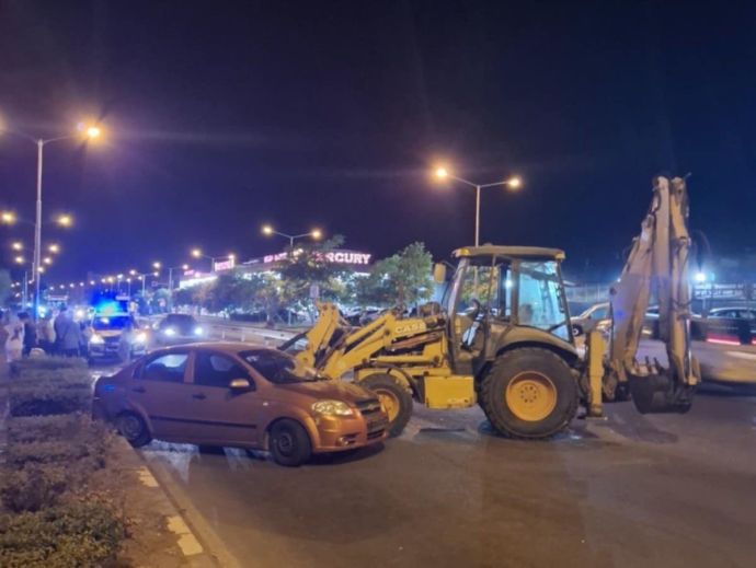 Багер и две коли се сблъскаха около 20.00 ч. тази вечер пред магазин "Меркурий" в посока Слънчев бряг. Инцидентът е станал по неустановени до момента причини. Ударените превозни средства са багерът-товарач, с бургаска регистрация, управляван от 68-годишен мъж, лек автомобил "Шевролет Авео", с украинска регистрация, управляван от 52-украинска гражданка и "Тойота Ярис", със софийска регистрация, шофирана от 30-годишна българка. Тримата водачи са тествани за употреба на алкохол, като багеристът дал положителен резултат - 1,67 промила. В болница са откарани водачката и пътник от "Шевролет"-а, но все още няма данни за получените телесни повреди. Водачът на тежкотоварната машина е задържан за срок до 24 часа, а багерът е иззет. По случая е образувано досъдебно производство.