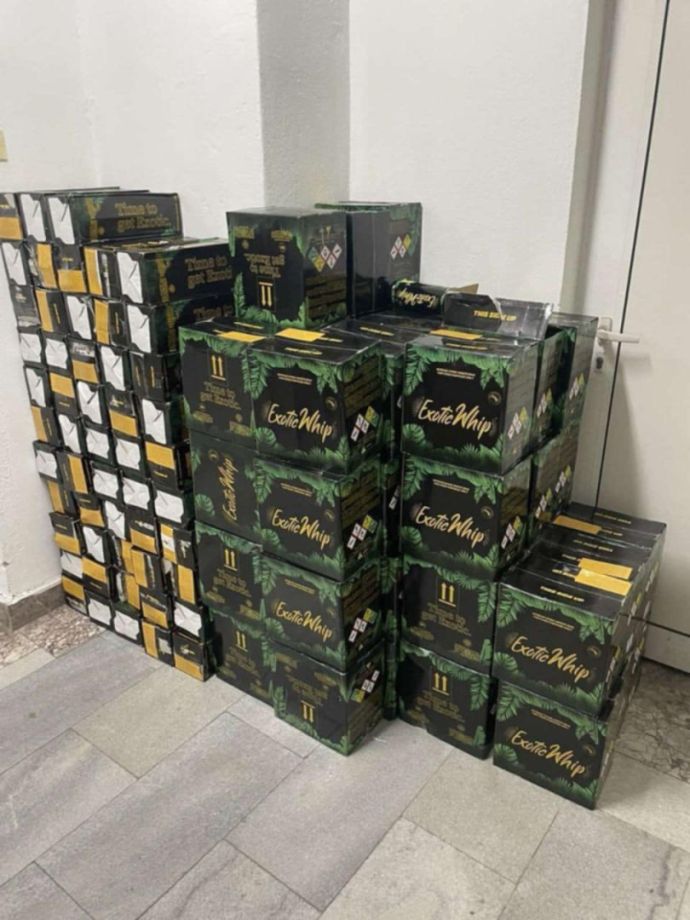 Голямо количество райски газ, както и латексови балони, са намерени и иззети в два леки автомобила, паркирани в местността "Аклади" край Черноморец от служители на сектор "Икономическа полиция" при ОДМВР Бургас и Районно управление - Созопол. Двата автомобила - "Дачия Докер", със софийска регистрация,както и "Рено Крио", със софийска регистрация, са стопанисвани от 35-годишен мъж. В "Дачията" са открити и иззети 51 кашона, всеки с по шест флакона, съдържащи райски газ с вместимост 670 гр. и 50 флакона с вместимост 2 000 гр. отново с райски газ /диазотен оксид/. В "Реното" са намерени и иззети 12 флакона по 670 гр. и 3 флакона по 2000 гр. с райски газ. И в двата автомобила са открити множество латексови балони, предназначени за разпространяване на райски газ по Южното Черноморие. Откритите вещи са иззети и задържани, образувана е преписка по описа на ОДМВР - Бургас с цел установяване произхода на райския газ.