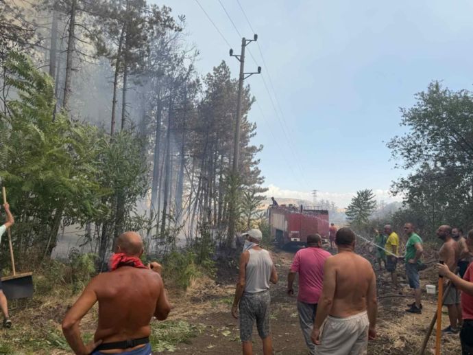 Служители на ОДМВР-Бургас евакуират все още ненапуснали вилите си граждани. В момента най- интензивен е пожарът в “Лозниците”.