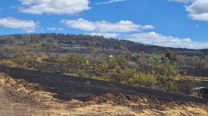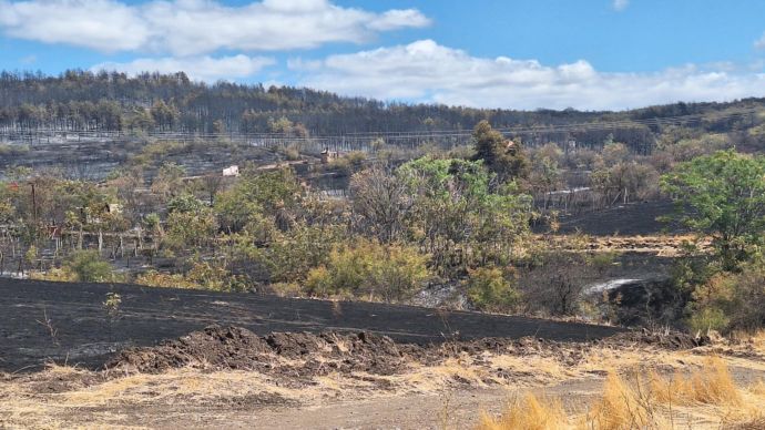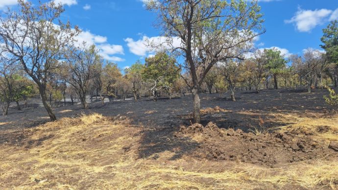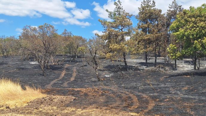 Икили 3-4хл. дка земи почерняха след огнената стихия, която бушува вчера непосредствено край Българово. Само няколко метра преди да влезе в градчето пламъцте са били спряни.