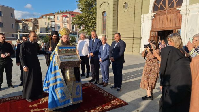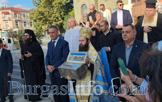 Бургас посрещна тържествено християнска светиня – Честния и Свещен Пояс на Пресвета Богородица днес в 18 часа. Той бе приет от Сливенския митрополит Арсений пред храм „Св. Св. Кирил и Методий“, като с литийно шествие тя бе пренесена до църквата „Света Богородица“, където ще остане до 17 септември. На церемонията присъстваха кметът Димитър Николов, областният управител Владимир Крумов, като участваха свещеници от цялото бургаско духовенство. Литийното шествие бе предшествано от гвардейски състав, хоследваха го стотици миряни, като пред църквата „Света Богородица“ се изви дълга опашка от хора.