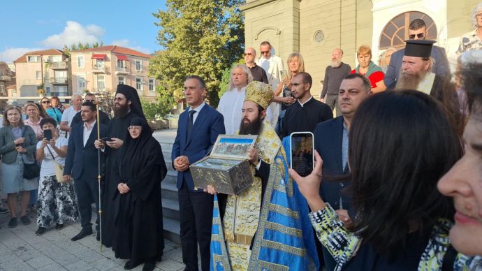 Свещената реликва пристигна в Бургас на големия хрисниянски празник Кръстовден. През тези дни храмът „Света Богородица“ ще бъде денонощно отворен за всички вярващи, които искат да се поклонят на светинята – за здраве, за изцеление от болести, за благословение на бездетни съпрузи, за утеха в душевни и телесни страдания и за покровителство над децата, семействата и родителите.