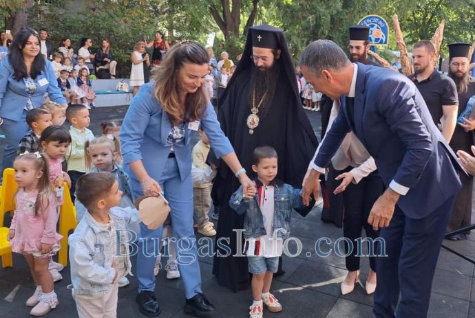 Кметът Димитър Николов и Сливенският митрополит Арсений бяха сред малките възпитаници на модерната детска градина „Веселушо“. Децата представиха богата, цветна и мила програма за откриването. Детската градина е една от най-модерните, благодарение на усилията на колектива и подкрепата на Община Бургас. Базата е напълно съвременна, като включва дори и сензорна стая. Тя е и с най-много школи, първото детско заведение е, което откри мажоретен състав, работи и по програмата „Да обичаш България“.
