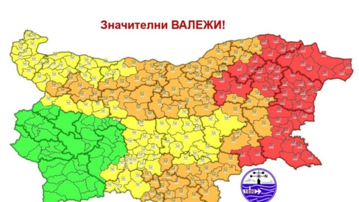Предупреждение от втора степен – оранжев код – е обявено за част от областите Монтана, Враца, Плевен, Ловеч, Пловдив, Смолян, Хасково, Бургас, Варна и Силистра, както и за целите Кърджали, Габрово, Велико Търново, Русе, Търговище, Шумен.