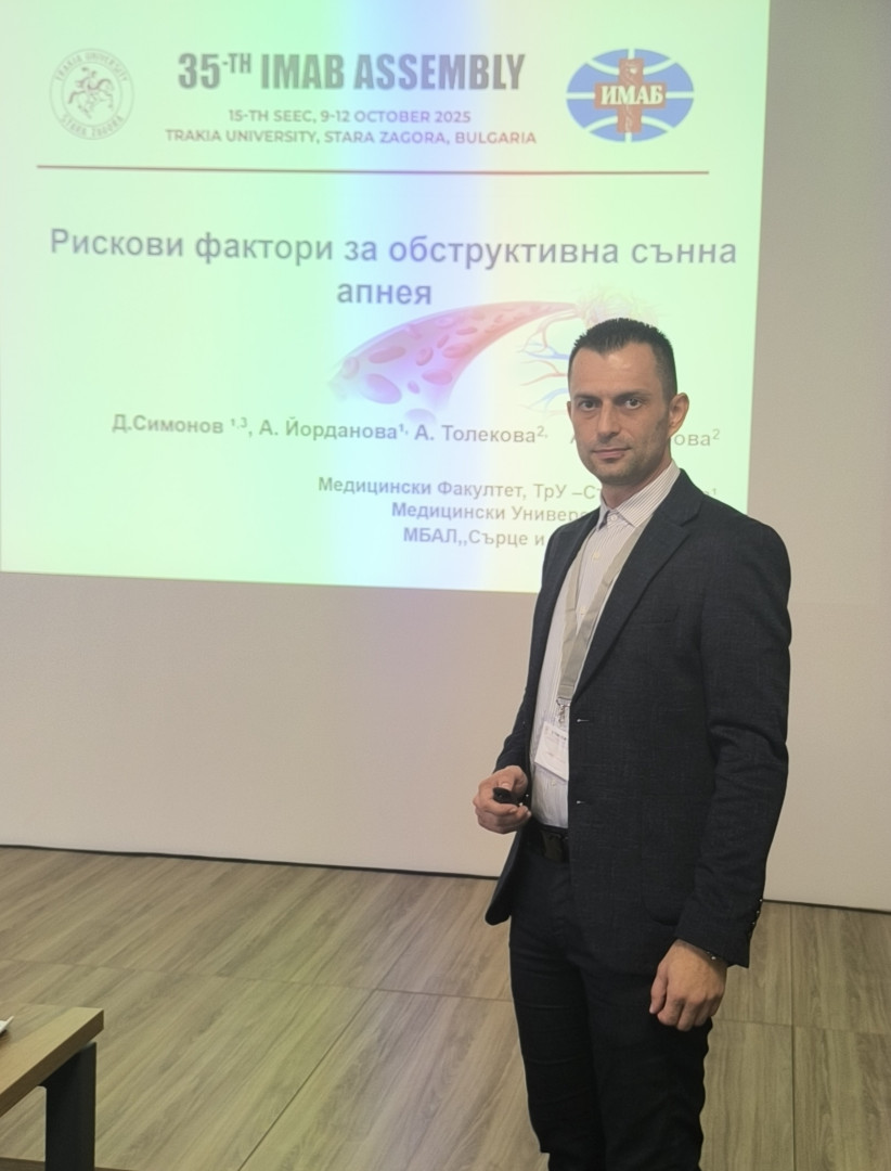 Избрани специалисти от клиниката по кардиология на високотехнологичния болничен комплекс ,Сърце и Мозък’ представиха два доклада на 35-та Асамблея на Международната медицинска асоциация – България (IMAB) и 15-та Югоизточноевропейска конференция по инфекции и рак (SEEC). Научният форум се проведе в Тракийски университет Стара Загора от 9 до 12 октомври т.г. Престижната конференция е едно от най-значимите научни събития в региона и обединява водещи учени, преподаватели и изследователи от страната и чужбина.